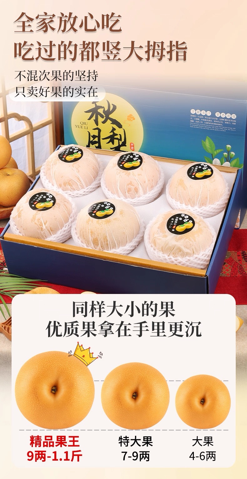 正宗山东莱阳秋月梨5斤单果400克+顺丰礼盒装